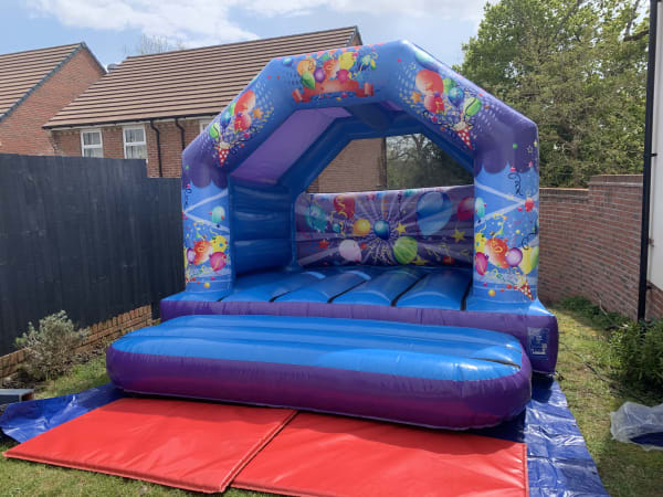 Our Party Theme Bouncy Castle is great addition to any type of event. Whether you're celebrating a wedding reception or birthday party this castle is perfect to keep the little ones occupied.
