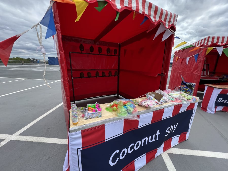 - Coconut Shy: The coconut shy is a timeless classic and perhaps the best-known funfair side stall. Simply knock down the coconuts to win.
